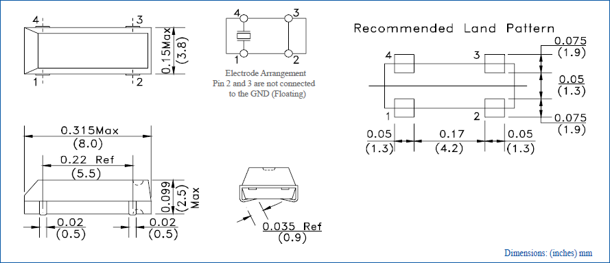8038mm,ABS25-32.768KHZ-6-1-T,Abracon進口晶振,ABS25,通信設備晶振,尺寸圖