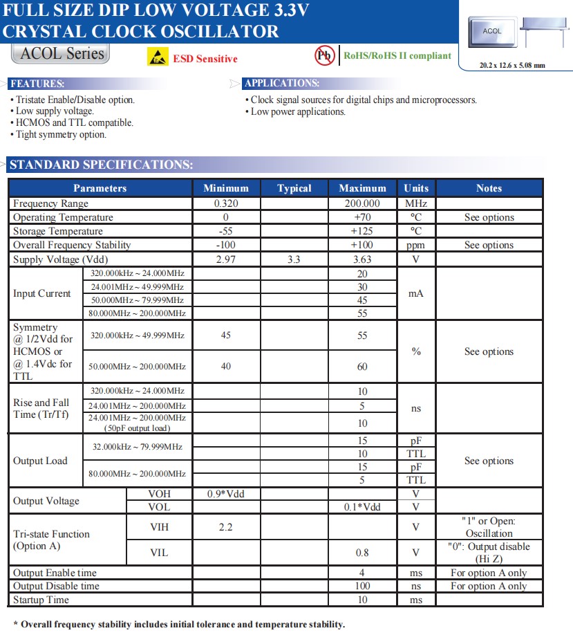 | ACOL-20.000MHZ-EK | 艾博康晶振 | ACOL | XO (Standard) | 20MHz | 3.3V |