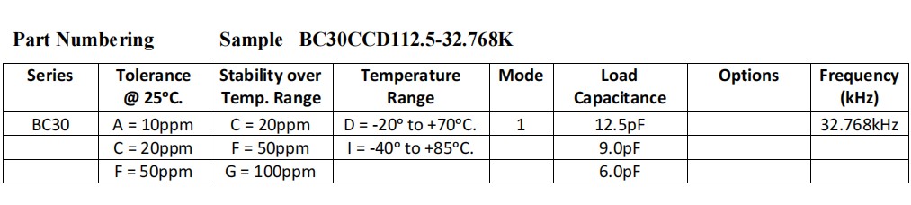 | Frequency Range | 32.768 kHz | |||||||||
