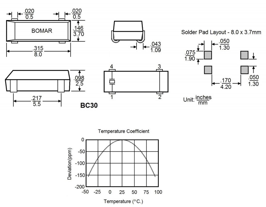 8038mm,BC30CCI112.5-32.768K,32.768KHz,Bomar儀器設(shè)備晶振,BC30,移動(dòng)通訊晶振,美國(guó)進(jìn)口晶振,Bomar博馬爾晶振,型號(hào):BC30,編碼為:BC30CCI112.5-32.768K,精度:±20ppm,頻率為:32.768KHz,工作溫度范圍:-40℃至+85℃,負(fù)載:12.5pF,頻率穩(wěn)定性:±20ppm,小體積晶振尺寸:8.0x3.7x2.5mm陶瓷封裝,四腳貼片晶振,無源晶振,石英晶振,石英晶體諧振器,無鉛環(huán)保晶振,SMD石英晶體。具有超小型,輕薄型,良好的抗沖擊性和耐熱性。應(yīng)用程序包括:實(shí)時(shí)時(shí)鐘晶振,移動(dòng)通信晶振、芯片卡晶振、無線通信晶振,鐘表電子晶振,電腦主板晶振等應(yīng)用。