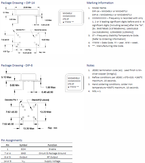 | MXO45HSLV-3C-45M0000 | CTS晶振 | MXO45HSLV | 45MHz | ±50ppm | 8-DIP, 4 Leads (Half Size, Metal Can) |