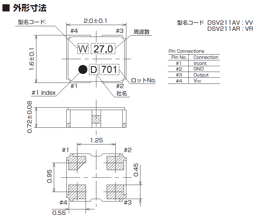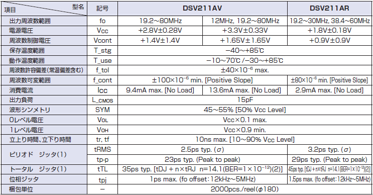VCXO壓控振蕩器,進口KDS數碼相機晶振,DSV211AR晶振型號,頻率范圍19.2MHz~60.0MHZ,小型SMD封裝2.0*1.6*0.72mm,采用了離子刻蝕調頻技術:比目前一般使用的真空蒸鍍方式調頻,主要在產品參數有以下提升:1.微調后調整頻率能控制在±2ppm,一般只能保持在±5ppm;2.產品的激勵功率相關性參數有大幅提升;3.產品的長期老化率可保證在±2ppm之內.