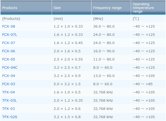 | 頻率穩定度公差(工作溫度范圍,引用到25°C閱讀) | ±15 ppm,±20 ppm, ±30 ppm,±50 ppm | |