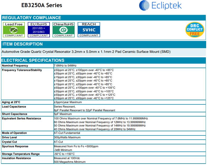ECLIPTEK晶振將有效率的使用自然資源和能源,以便從源頭減少廢物產(chǎn)生和排放.我們將在關注于預防環(huán)境和安全事故,保護公眾健康的同時,努力改進我們的操作.我公司將積極參與加強公眾環(huán)境、健康和安全意識的活動,提高公眾對普遍的環(huán)境、健康和安全問題的注意.日蝕晶振,EB3250A石英諧振器,EB3250AXA20-26.000M-TR晶振.