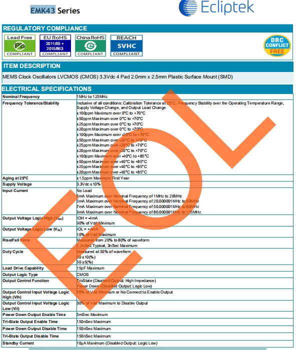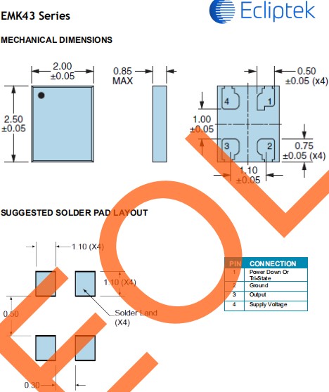 ECLIPTEK晶振,EMK43石英振蕩器,EMK43H2H-24.000M-TR晶振,ECLIPTEK晶振公司成立于1987年,是一家在頻率控制市場(chǎng)上公認(rèn)的市場(chǎng)領(lǐng)導(dǎo)者。我們最先進(jìn)的產(chǎn)品和領(lǐng)先的前沿技術(shù)使我們能夠?yàn)槲覀兊目蛻籼峁┳詈玫?span style="font-size: 16px;">貼片石英晶振和石英振蕩器產(chǎn)品。服務(wù)是ECLIPTEK無(wú)源貼片晶體成功的基石。我們考慮客戶的合作伙伴,努力滿足并超越他們對(duì)質(zhì)量、客戶服務(wù)和價(jià)值的要求。公司擁有專業(yè)的技術(shù)支持和全面的質(zhì)量計(jì)劃,使其成為行業(yè)最優(yōu)秀的頻率控制產(chǎn)品資源。