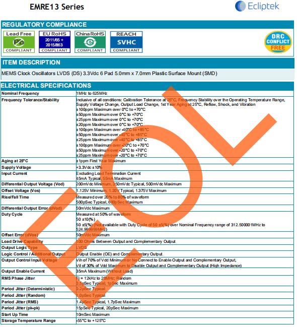 ECLIPTEK晶振公司將有效率的使用自然資源和能源,以便從源頭減少廢物產生和排放.我們將在關注于預防環境和安全事故,保護公眾健康的同時,努力改進我們的操作.我公司將積極參與加強公眾環境、健康和安全意識的活動,提高公眾對普遍的環境、健康和安全問題的注意. EMRE13可編程振蕩器,日蝕歐美晶振,EMRE13-C2H-12.000M-TR晶振.