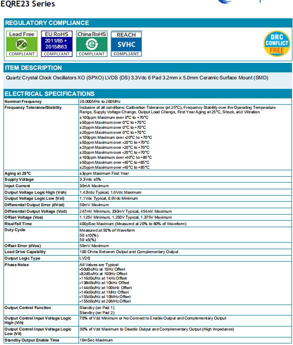 日蝕高品質晶振,EQRE23貼片振蕩器,EQRE23A2J-26.000M-TR晶振,ECLIPTEK晶振公司成立于1987年,是一家SMD石英晶體,貼片無源晶振頻率元件控制市場上公認的領導者.日蝕晶振公司擁有先進的產品和領先的技術使我們能夠為客戶提供最好的石英晶體,貼片晶振,石英晶振和有源晶振,石英晶體振蕩器,貼片振蕩器產品.