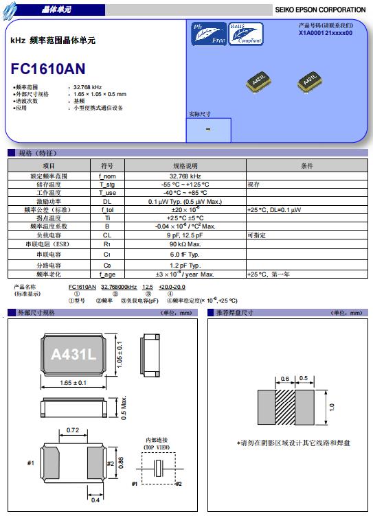 (2) 在設計時請參考相應的推薦封裝.愛普生晶振FC1610AN,X1A000121000500貼片晶體