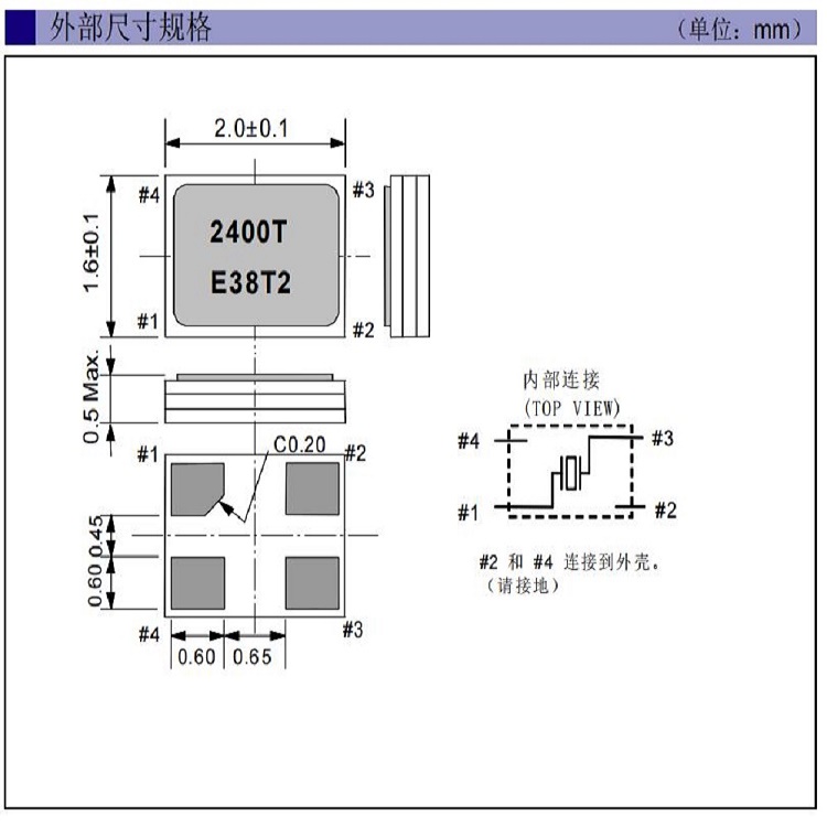.外部尺寸規(guī)格:2.0×1.6×0.5mm