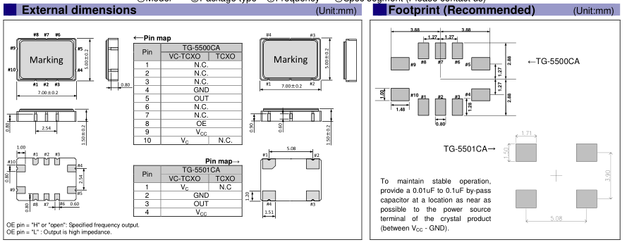 | X1G0039010203 | TG-5501CA | 50.000000 MHz | 7.00 x 5.00 x 1.50 mm | Clipped sine wave | 3.135 to 3.465 V | +/-1.0 ppm | -40 to +85 °C |
