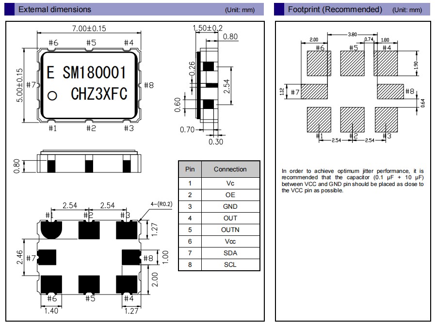 | X1G0045611007 | VG7050ECN | 622.080000 MHz | CJGLPF | 7.00 x 5.00 x 1.50 mm | LV-PECL | 2.970 to 3.630 V |