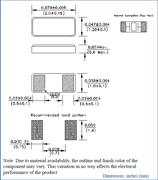 | 頻率溫度特征 | f_tem | ±20× 10-6 /-40°C~+1250°C | 超出標(biāo)準(zhǔn)的規(guī)格請聯(lián)系我們. |