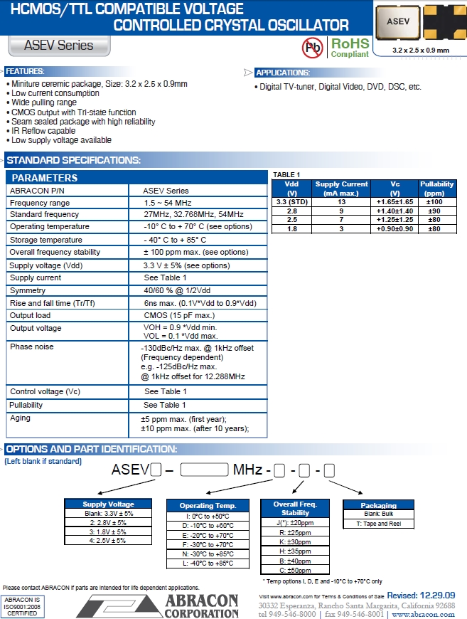 Abracon晶振,有源晶振,ASEV石英振蕩子.小型貼片石英晶振,外觀尺寸具有薄型表面貼片型石英晶體諧振器,特別適用于有小型化要求的市場領(lǐng)域,比如智能手機(jī),無線藍(lán)牙,平板電腦等電子數(shù)碼產(chǎn)品.晶振本身小型,薄型,重量輕,晶體具有優(yōu)良的耐環(huán)境特性,如耐熱性,耐沖擊性.