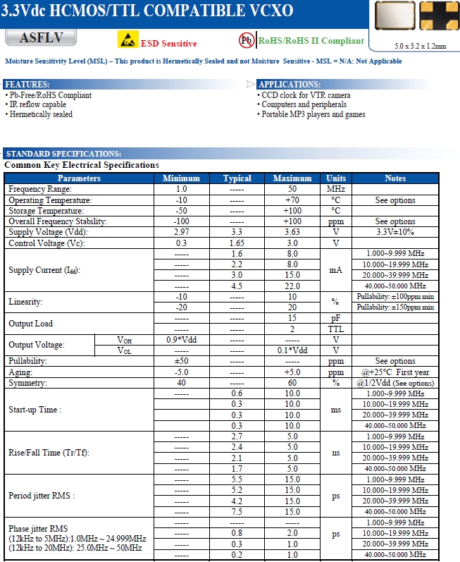 Abracon晶體,艾博康晶振,ASFLV壓控晶振.智能手機晶振,產品具有高精度小型的表面貼片型石英晶體振蕩器,適用于移動通信終端的基準時鐘等移動通信領域.比如智能手機,無線通信,衛星導航,平臺基站等數碼產品類別,晶振本身小型,薄型具備各類移動通信的基準時鐘源用頻率,貼片晶振具有優良的電氣特性,耐環境性能適用于移動通信領域,滿足無鉛工作的高溫回流溫度曲線要求.