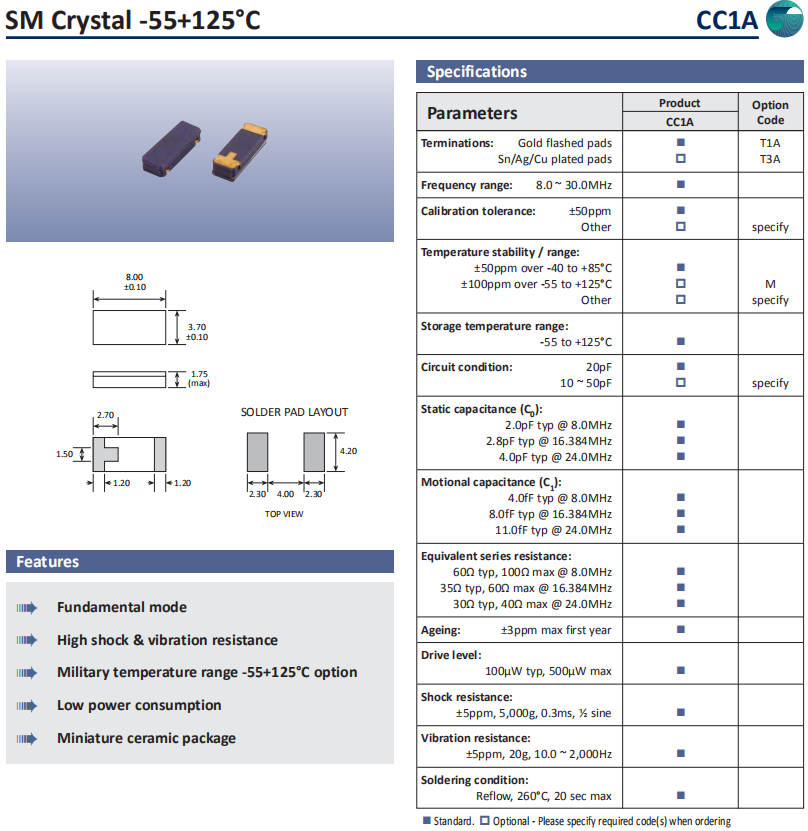 | Golledge晶振 | 單位 | CC1A晶振 | 石英晶振基本條件 |