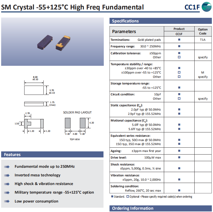 | Golledge晶振 | 單位 | CC1F晶振 | 石英晶振基本條件 |