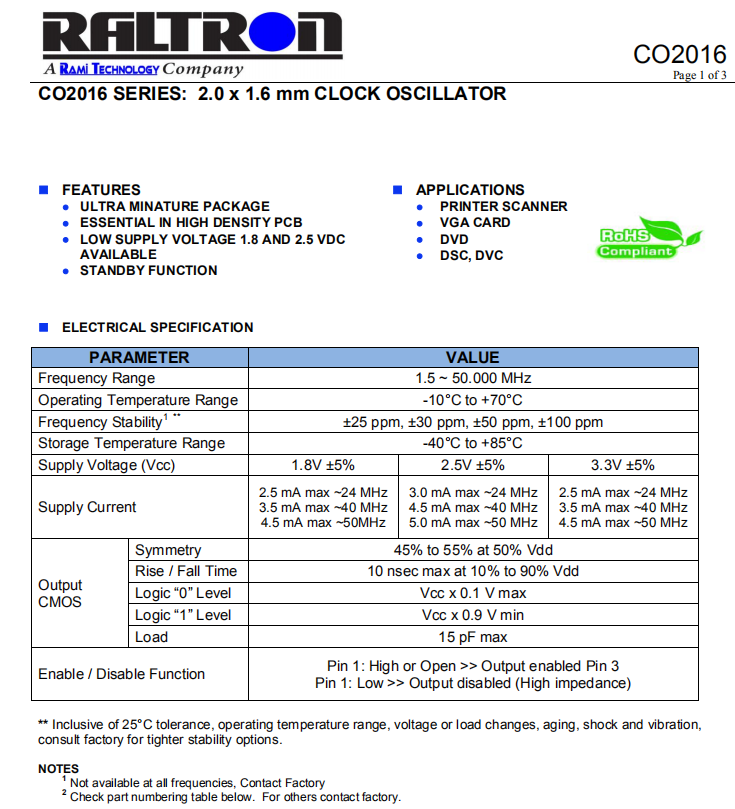 RALTRON晶振,CO2016晶振,石英晶體振蕩器.有源晶振,是只晶體本身起振需要外部電壓供應,起振后可直接驅動CMOS集成電路,產品本身已實現與薄型IC(TSSOP封裝,TVSOP封裝)同樣的1mm厚度,斷開時的消費電流是15µA以下,編帶包裝方式可對應自動搭載及IR回流焊接(無鉛對應)產品有幾種電壓供選1.8V,2.5V,3V3.3V,5V,以應對不同IC產品需要.