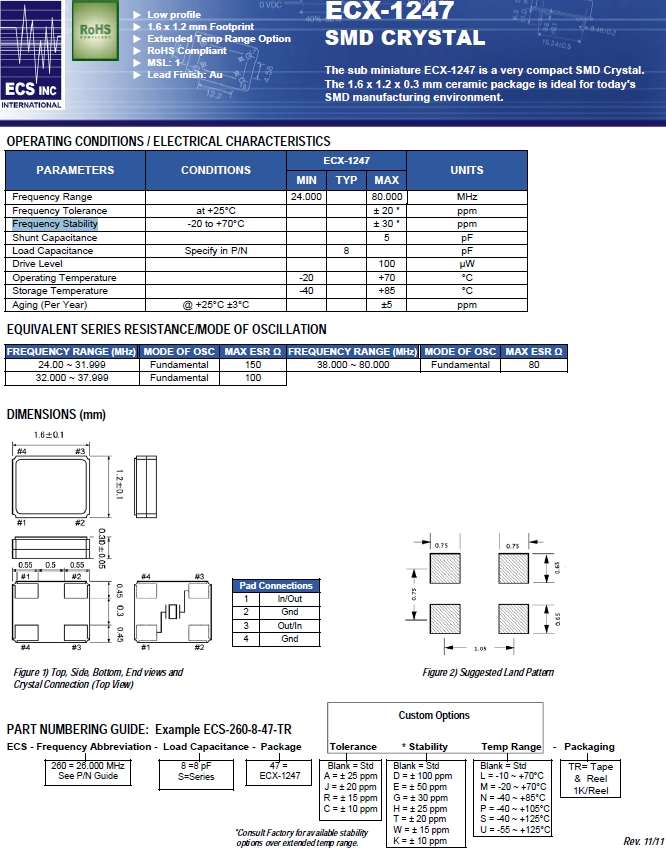 | ECS晶振 | 單位 | ECX-1247晶振 | 石英晶振基本條件 |
