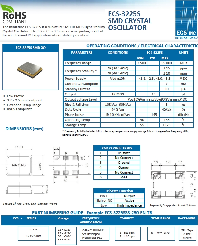 ECS晶振,ECS-3225S18-100-FN-TR振蕩器,ECS-3225S水晶振蕩子.貼片式石英晶體振蕩器,低電壓啟動功率,并且有多種電壓供選擇,比如有1.8V,2.5V,3.3V,3.8V,5V等,產品被廣泛應用于,平板筆記本,衛星系統,光纖通道,千兆以太網,串行ATA,串行連接SCSI,PCI-EXPress的SDH / SONET發射基站等領域.符合RoHS/無鉛.