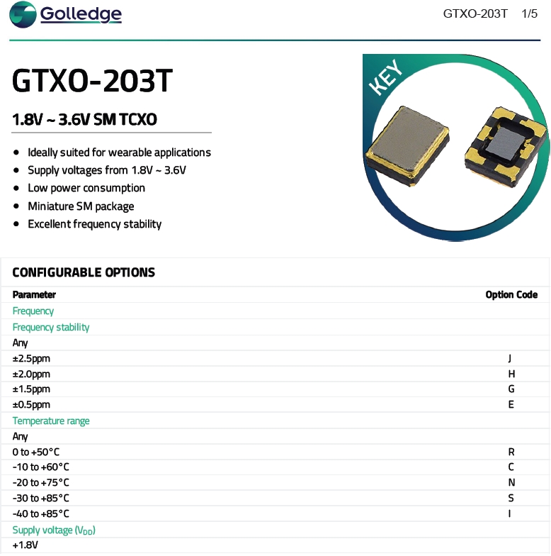 Golledge晶體,高利奇晶振,GTXO-203T晶體振蕩器.為對應低電源電壓的產品.(DC+1.8V±0.1V to +2.9V±0.1V對應IC可能) 高度:高0.8 mm,體積:0.0022 cm3,重量:0.008 g,小型,輕型,低消耗電流,表面貼片型產品.(可對應回流焊)無鉛產品.滿足無鉛焊盤的高溫回流溫度曲線要求,帶有AFC(頻率控制)功能,Enable/Disable功能,產品本身可根據使用需要進行選擇.
