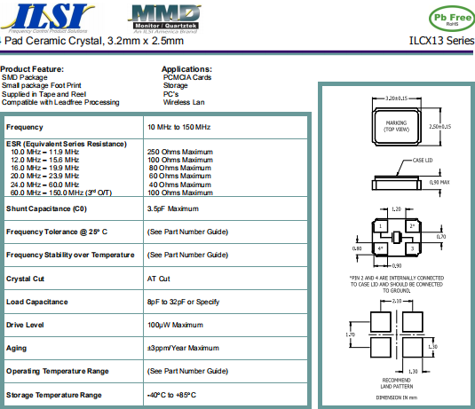 | ILSI晶振 | 單位 | ILCX13晶振 | 石英晶振基本條件 |