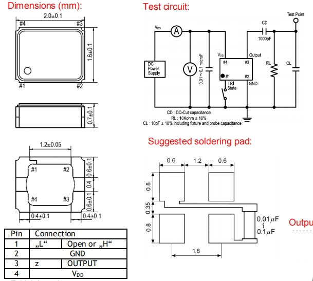 貼片進(jìn)口晶振可能會在某些條件下受到損壞.例如從桌上跌落或在貼裝過程中受到?jīng)_擊.如果產(chǎn)品已受過沖擊請勿使用.