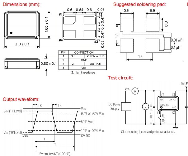 建議將輸出負載安裝在盡可能靠近石英TCXO振蕩器的地方(在20mm范圍之間).