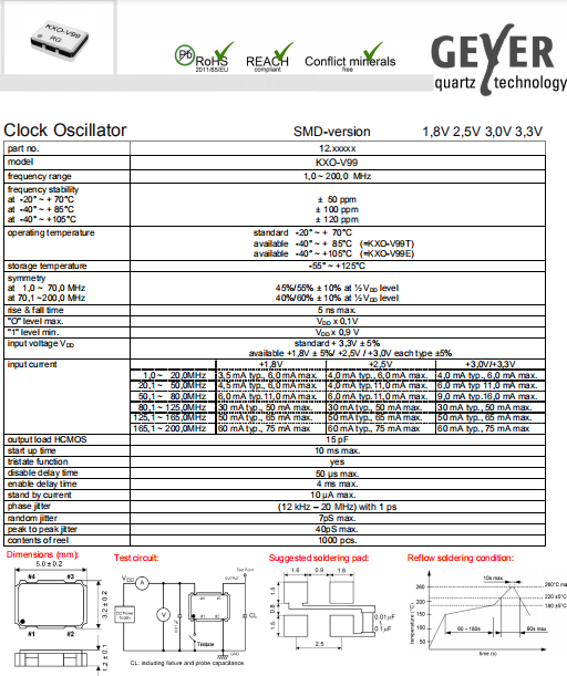 Geyer晶振,KXO-V99晶振,有源晶體振蕩器.5032mm體積的石英晶體振蕩器,有源晶振,該產品可驅動2.5V的溫補晶振,壓控晶振,VC-TCXO晶體振蕩器產品,電源電壓的低電耗型,編帶包裝方式,可對應自動高速貼片機自動焊接,及IR回流焊接(無鉛對應),為無鉛產品,超小型,質地輕.產品被廣泛應用到集成電路,程控交換系統,無線發射基站.