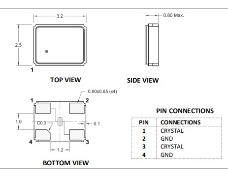 建議將輸出負載安裝在盡可能靠近石英振蕩器的地方(在20mm范圍之間).
