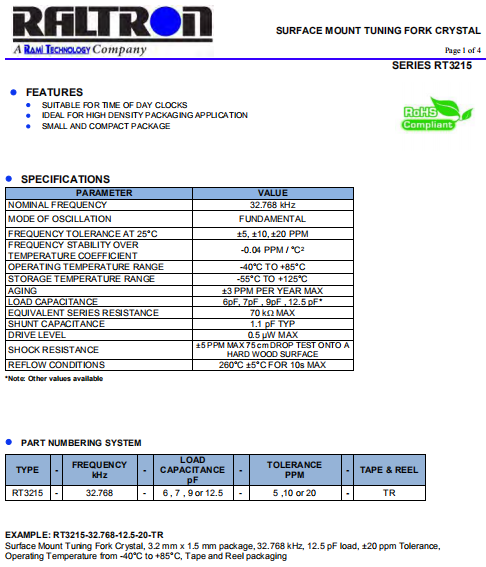 | RALTRON晶振 | 單位 | RT3215晶振 | 石英晶振基本條件 |