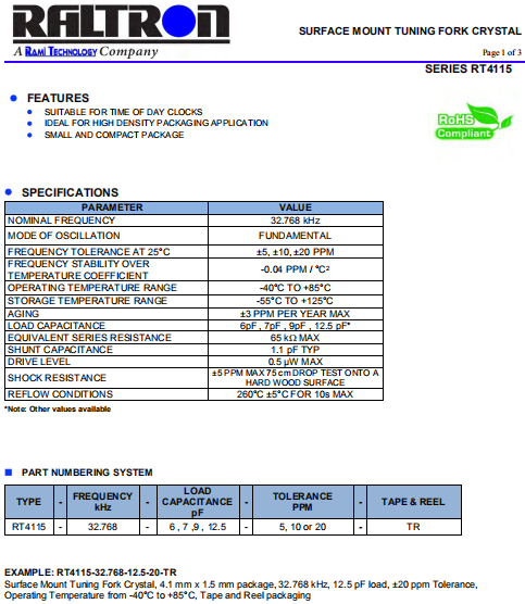 | RALTRON晶振 | 單位 | RT4115晶振 | 石英晶振基本條件 |
