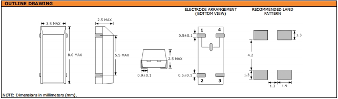 | 頻率老化 | f_age | ±5 × 10-6 / year Max. | +25°C,第一年 |