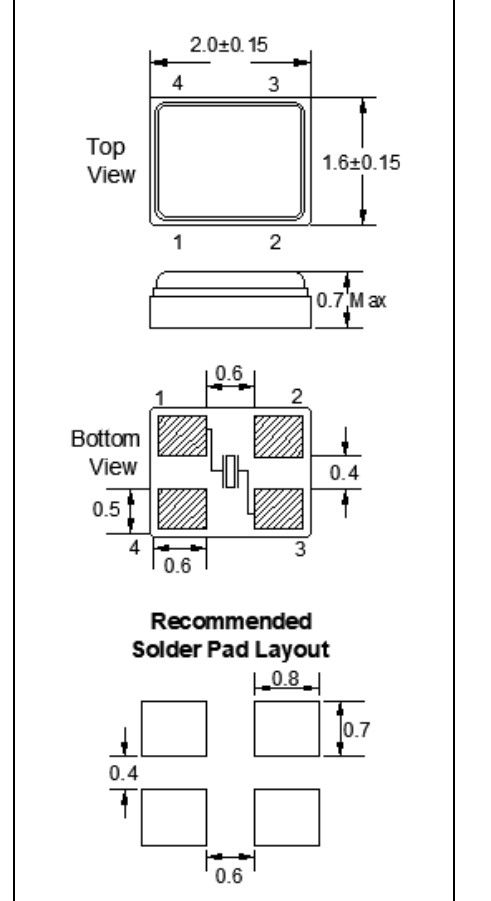 FC1BQCCEK27.12-1,2016mm,FC1BQ,27.12MHz,FOX高性能晶振,SMD晶體,藍(lán)牙模塊晶振,尺寸圖