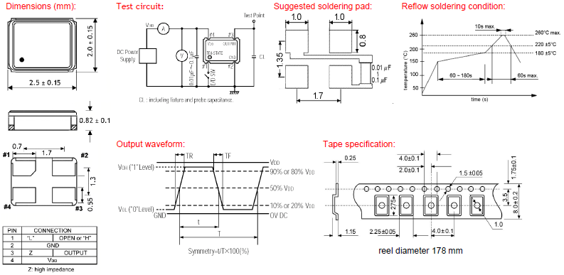 | tri-state control voltage (Pin#1) | VIH: VDD x 0.7 min.; VIL: VDD x 0.3 max. | |||||||||