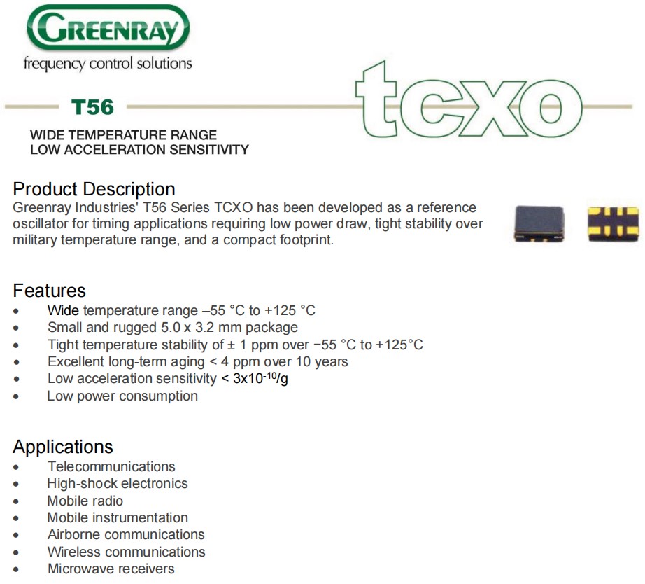 T56-J57-CS-LG-26MHz-E,5032mm,Greenray溫補晶振,T56,航空電子晶振