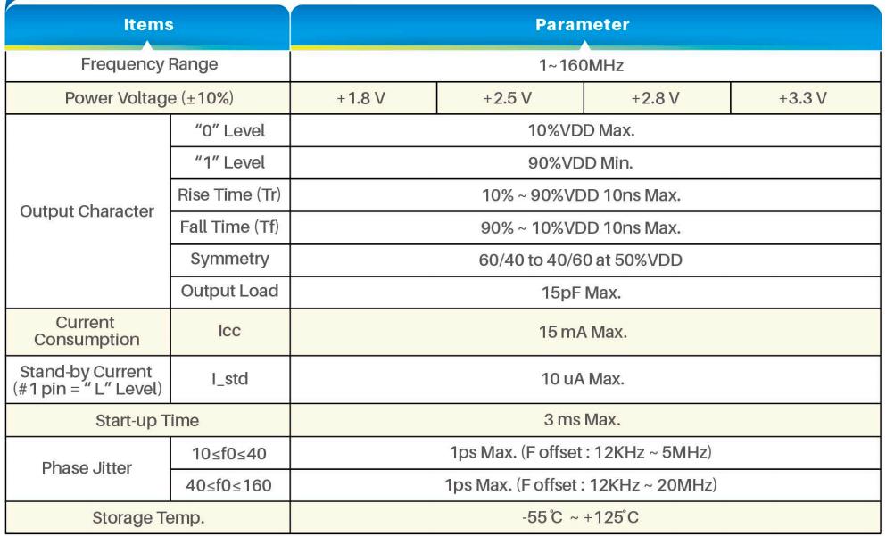 石英晶振產品特性: