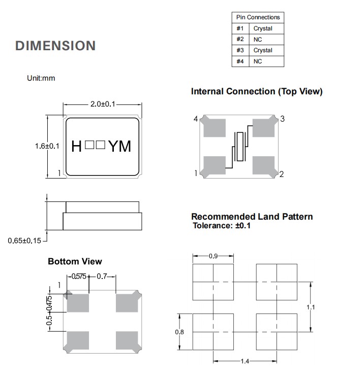 臺灣H.ELE加高晶體諧振器,HSX211G石英貼片晶振,平板電腦6G晶振,無鉛環保晶振,小型便捷式設備晶振,尺寸圖
