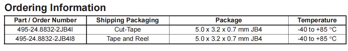 | 495-24.8832-2JB4I | 無源晶振 | CRYSTAL 24.8830MHZ 10PF SMD |