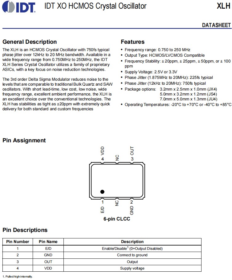 | XLH336125.000JX4I | IDT晶振 | OSC XO 125.0000MHZ HCMOS SMD | XLH | 125MHz |