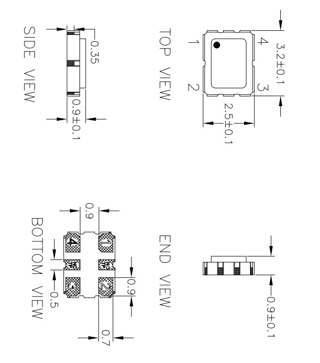 IDT有源晶振,XLH335012.288000I,低噪聲6G網絡晶振,XLH336125.000JX4I,HCMOS晶體振蕩器,尺寸圖