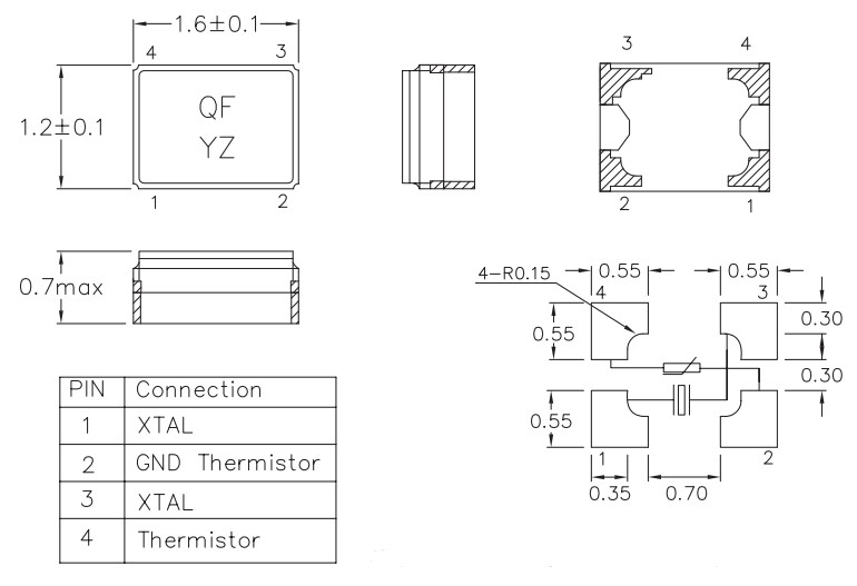 THR-1612,1612mm,38.4M,Interquip移動通訊晶振,無線應用晶振,輕薄型晶振,尺寸圖