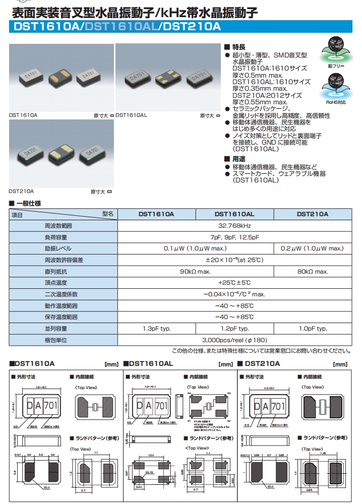 | KDS晶振 | 7BG03276A1X | DST1610A | 1610 | 32.768K | 7PF | 20ppm | |