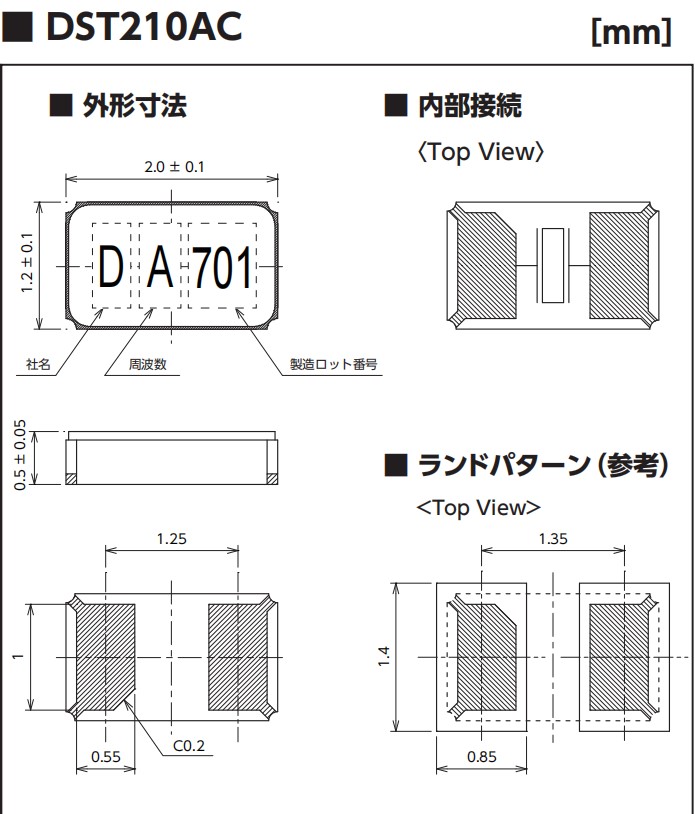 大真空2012mm晶體\DST210AC無源諧振器\1TJ125DR1AC054 參數表