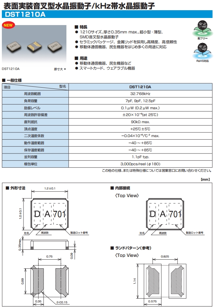 | KDS晶振 | 7BG03276A1X | DST1610A | 1610 | 32.768K | 7PF | 20ppm | |