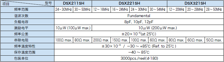 DSX321SL金屬面晶振,DSX321SH晶體諧振器,家用電器晶振,小型·薄型,SMD晶振3225尺寸、厚度0.65mm,耐熱性卓越,高精度、高可靠性,支持廣泛的頻率12MHz~50MHz,無需防濕包裝管理,Moisture Sensitivity Level:LEVEL1(IPC/JEDEC J-STD-033),依據(jù)AEC-Q200,用途通信機、近距離無線模塊、DVC、DSC、PDA、PC等小型設(shè)備,多媒體設(shè)備等車載用途.