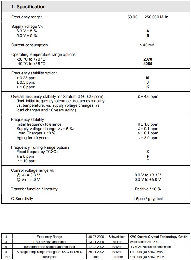 Overall frequency stability for Stratum 3 (± 0.28 ppm): (incl. initial frequency tolerance, frequency stability vs. temperature, vs. supply voltage changes, vs. load changes and 10 years aging) |