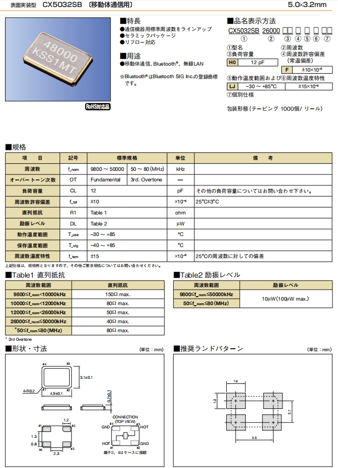 | 負載容量 | CL | 12 | pF | 關于其他的負荷容量請咨詢。 | |||||||||