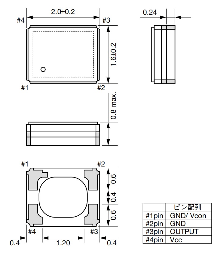 KT2016K26000BCW18ZAS,KT2016K,26MHz,Kyocera藍牙晶振,2016mm晶振,移動通訊晶振,尺寸圖