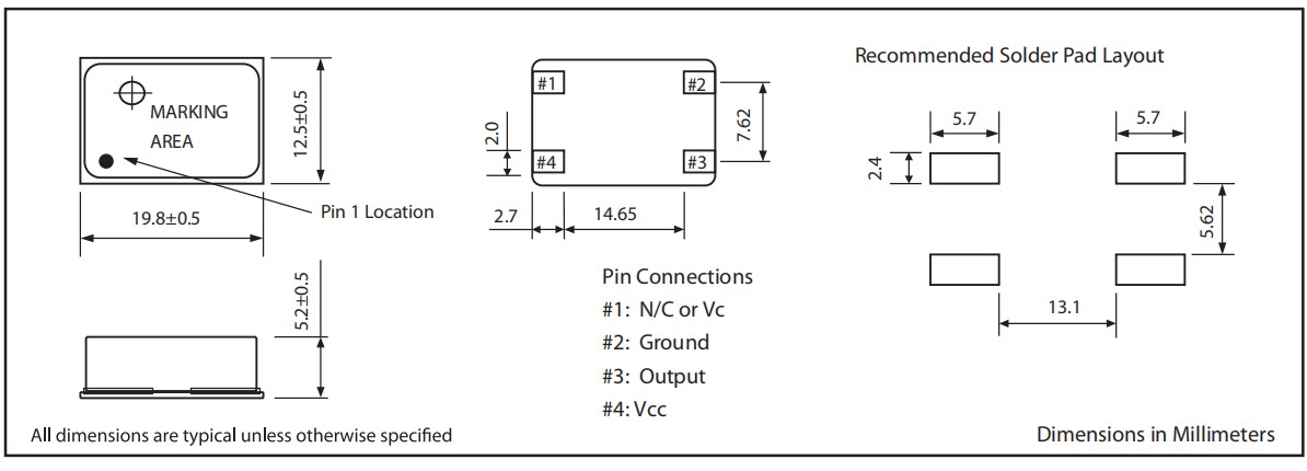 MTI-milliren米利倫晶振,401系列TCXO振蕩器,低相位噪聲晶振,GPS定位晶振,通訊設備晶振,尺寸圖