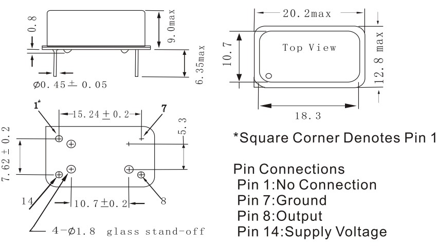 SP02-5SC50-A14-100MHz,Macrobizes有源晶振,SPXO振蕩器,長方形鐘振,石英晶振,尺寸圖